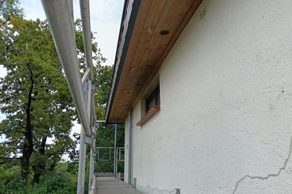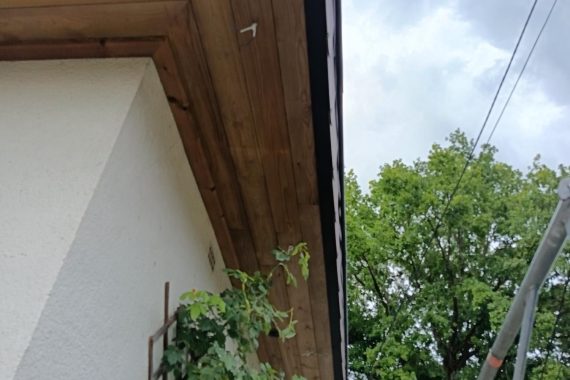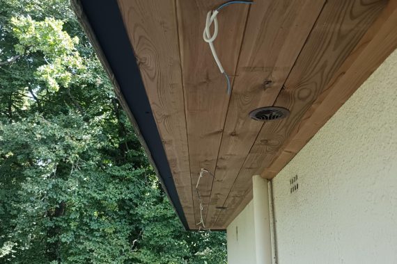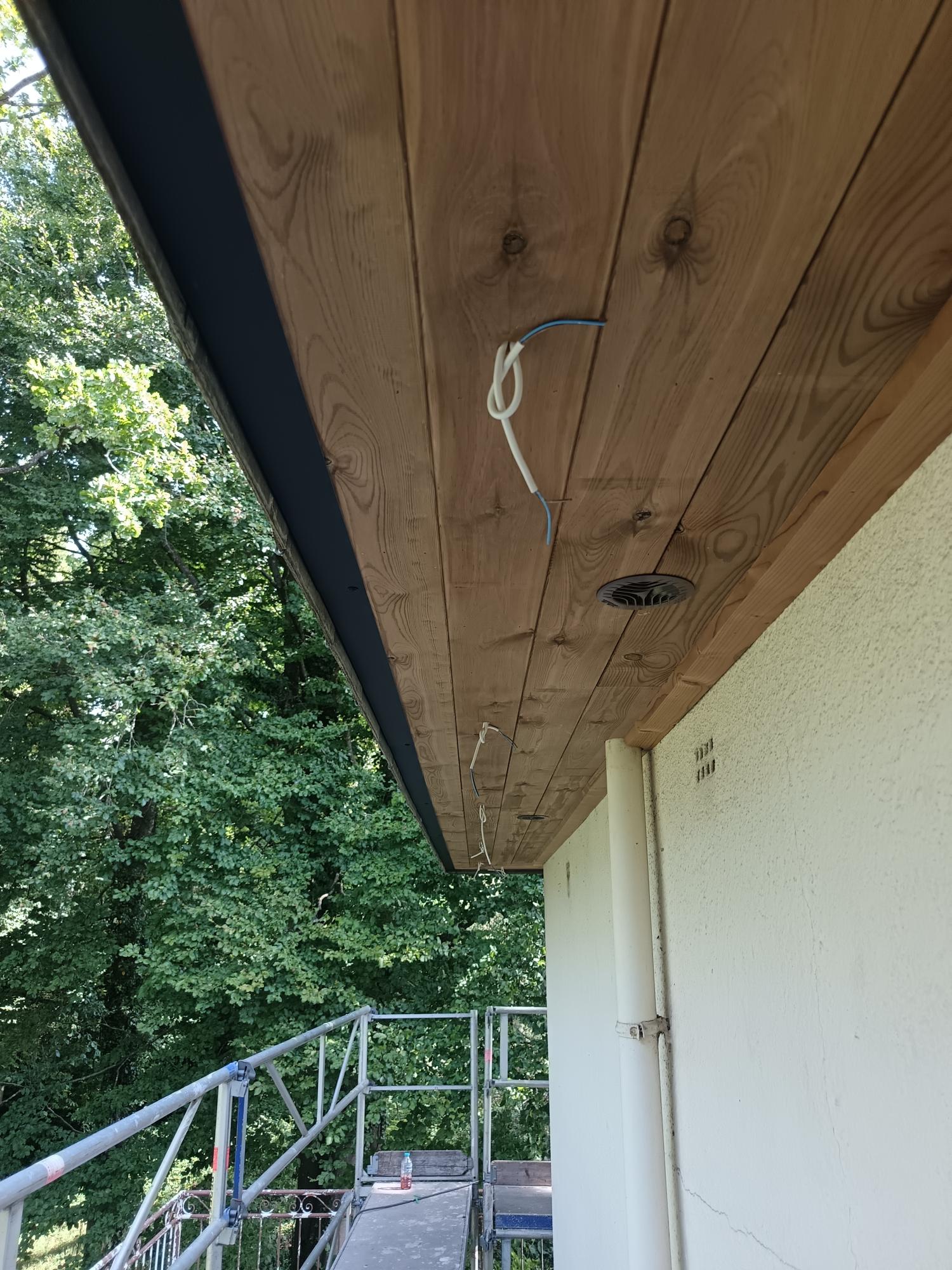 réalisation complète d’un bardage de dessous de corniche – remise à niveau de l’ossature – pose d’un bardage « emboité » – rive de finition en aluminium noir