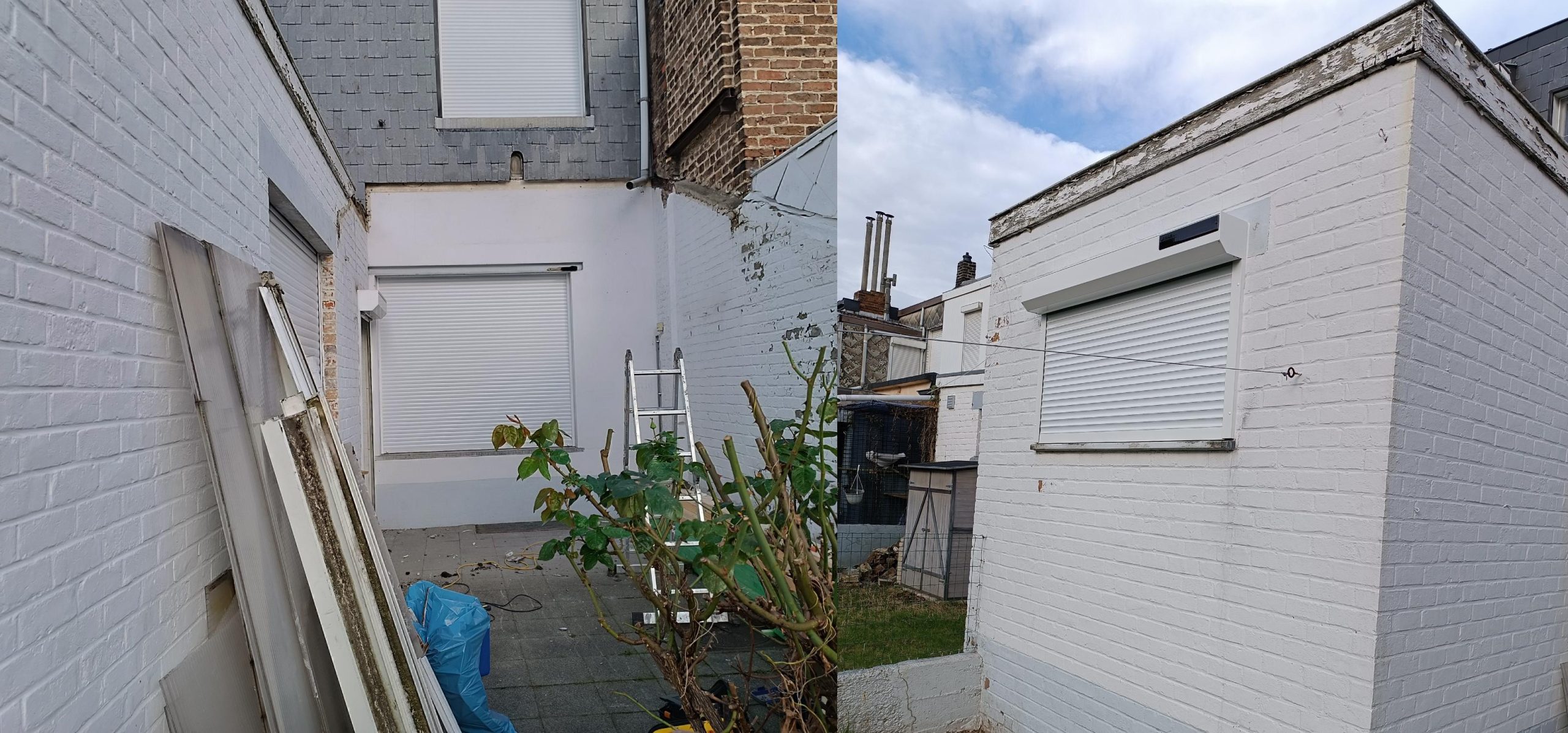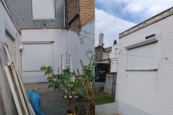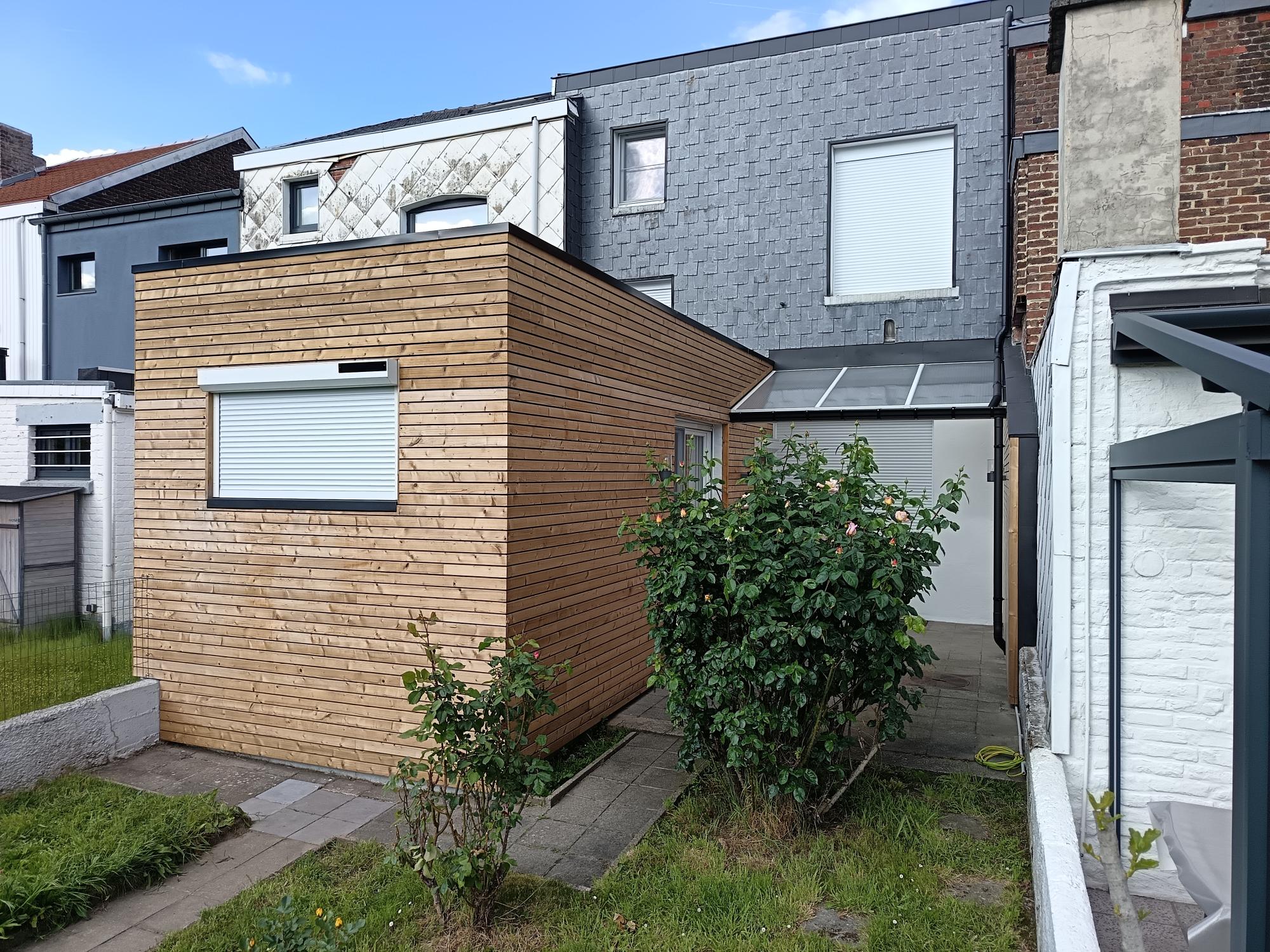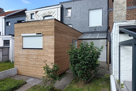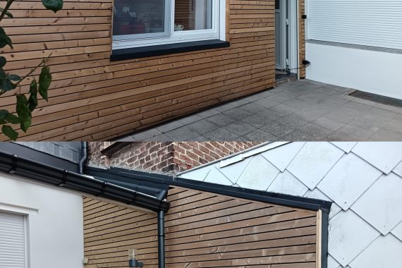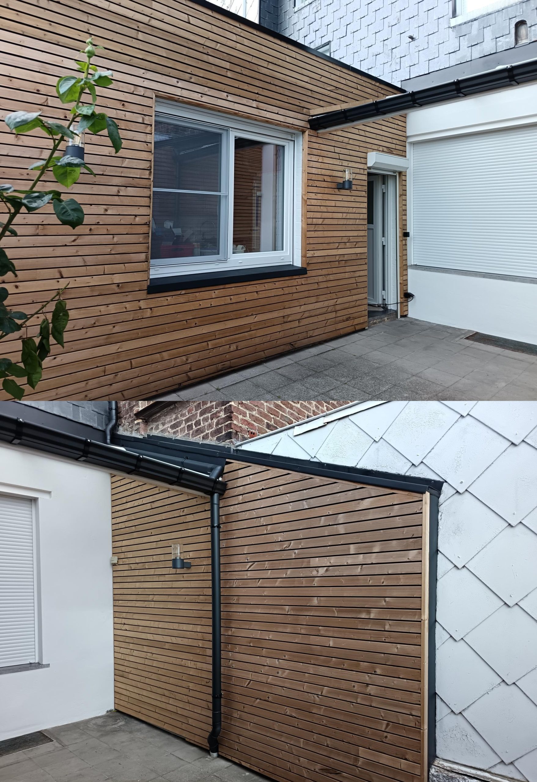 réalisation complète d’un bardage extérieur en sapin thermowood – remise à niveau de la façade – pose d’un bardage ajouré horizontal