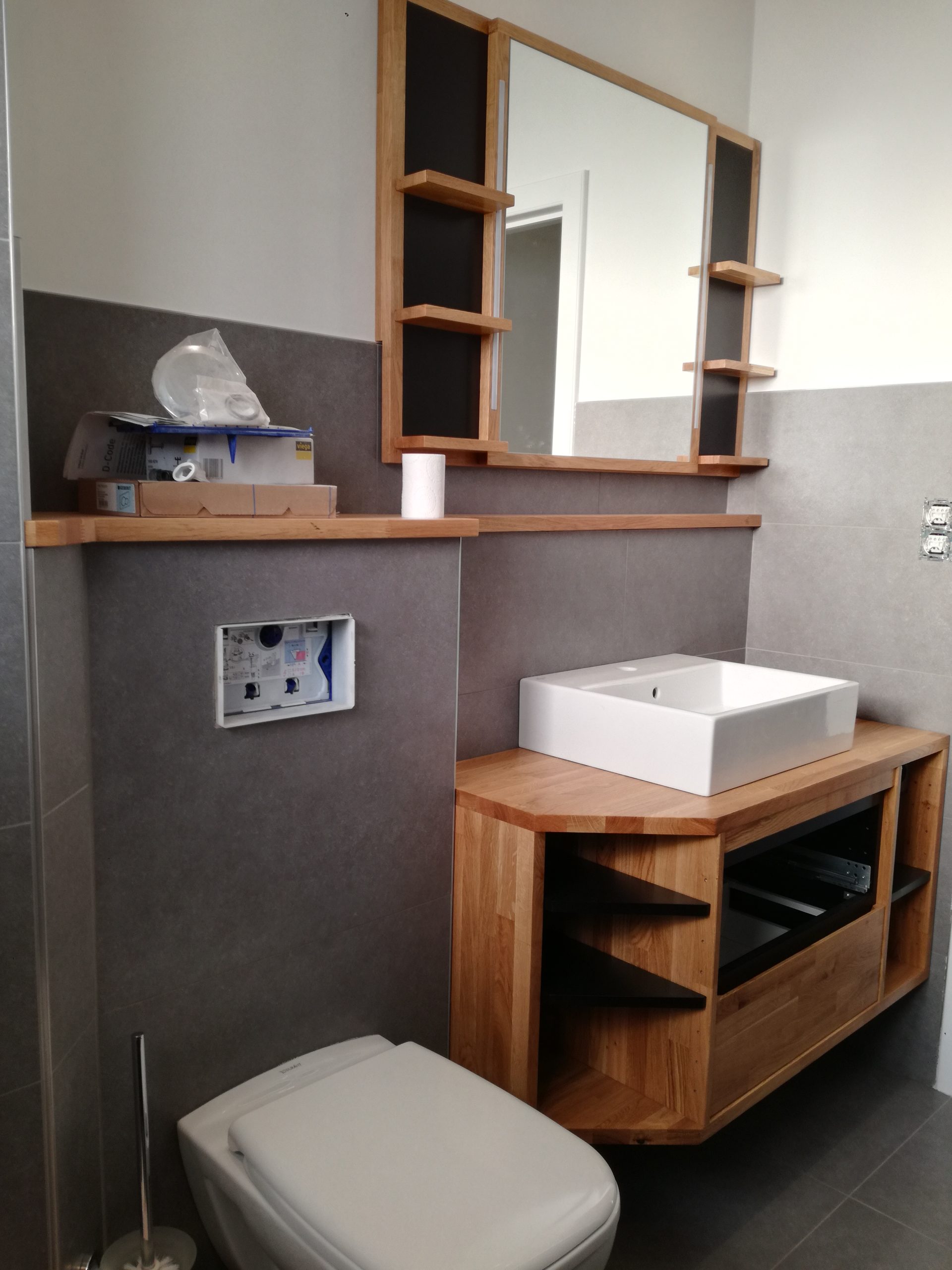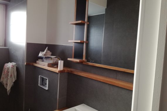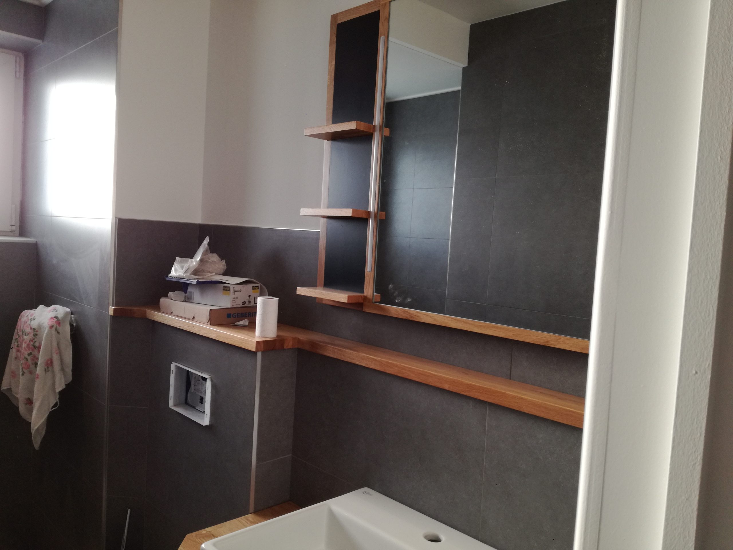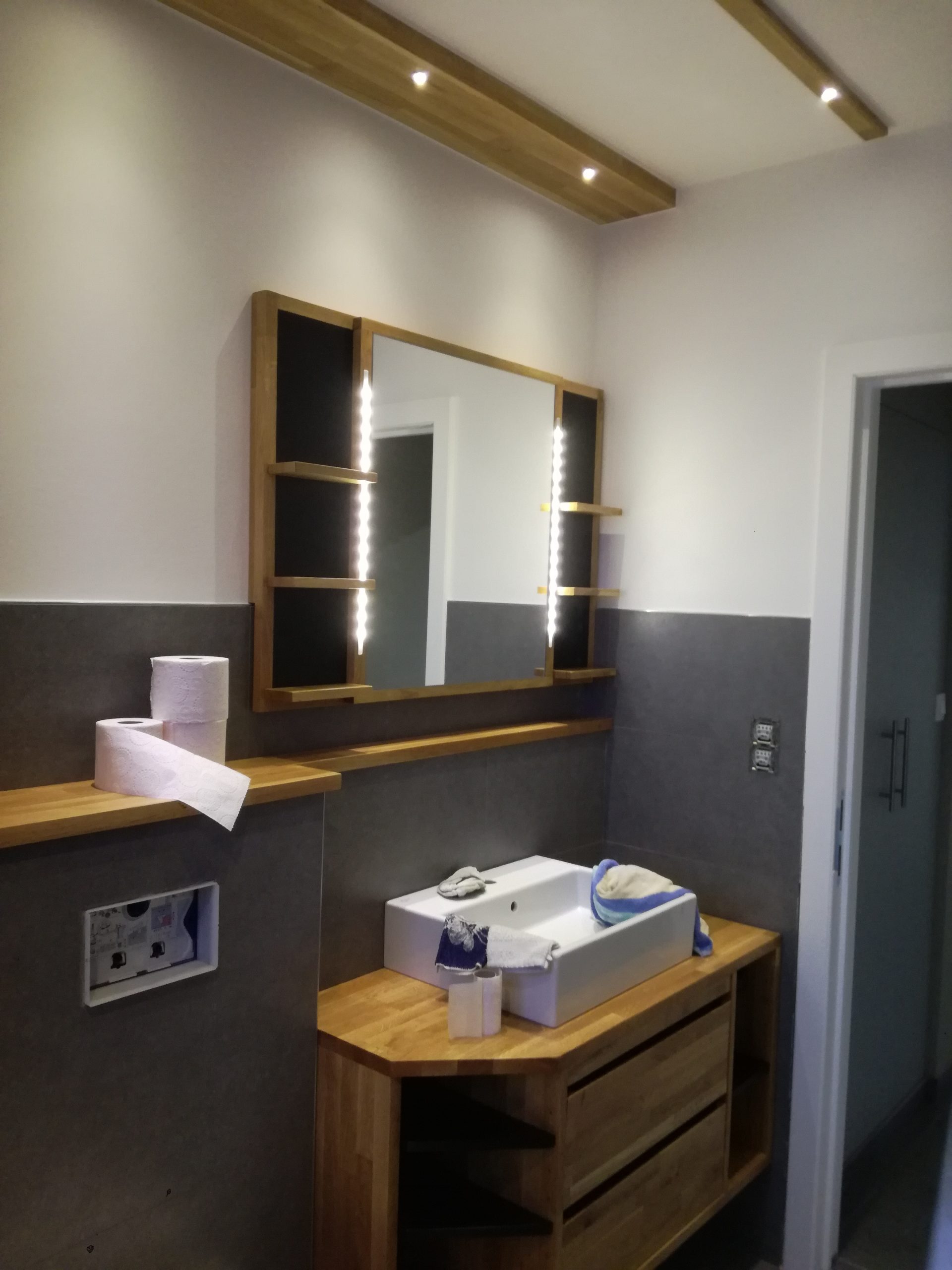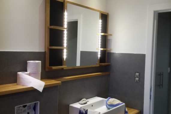 HOME / Meuble sdb chêne + miroir + habillage mural