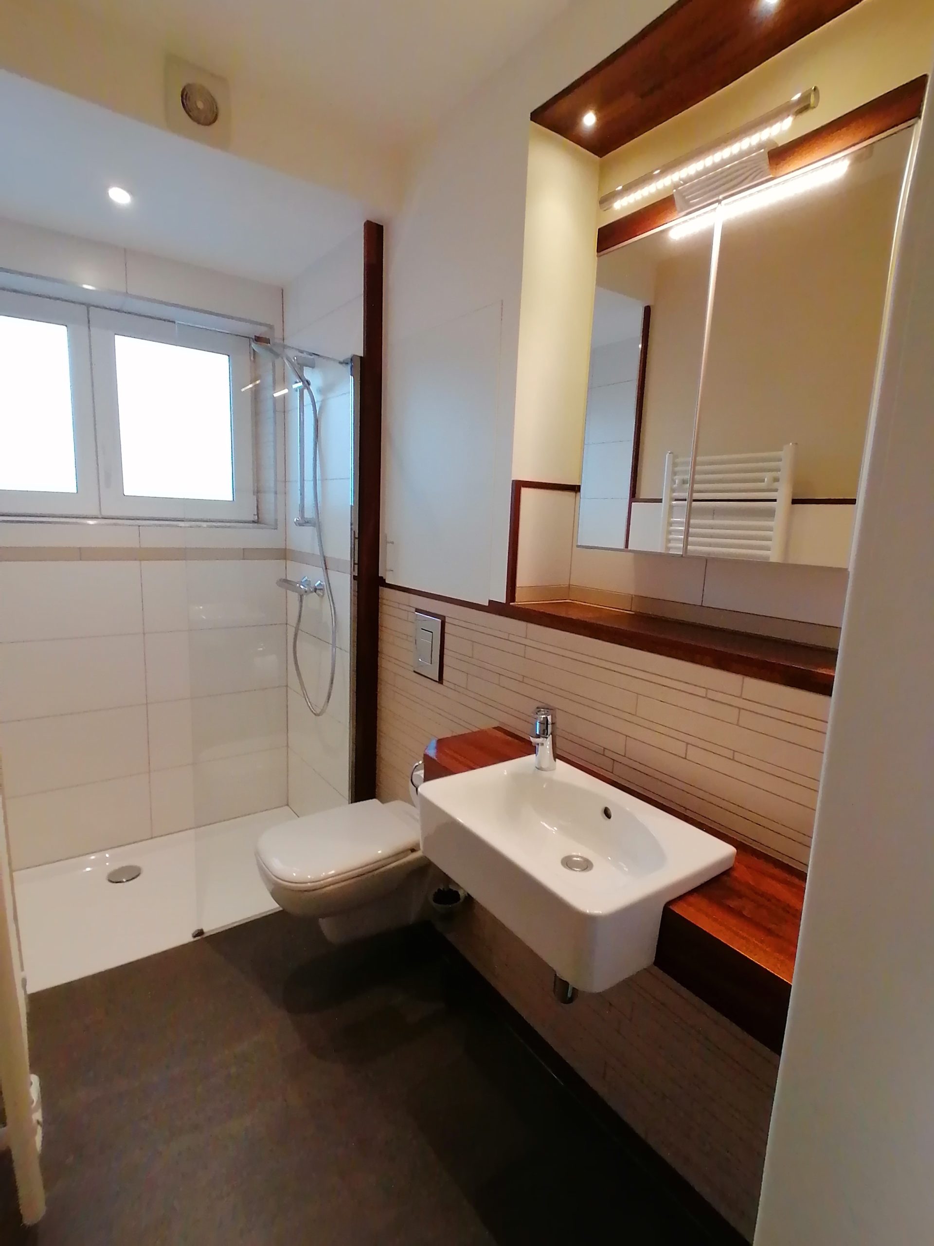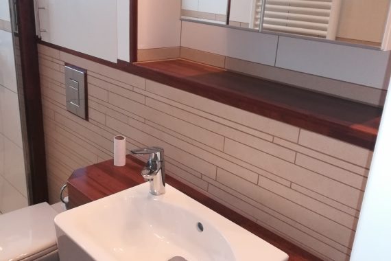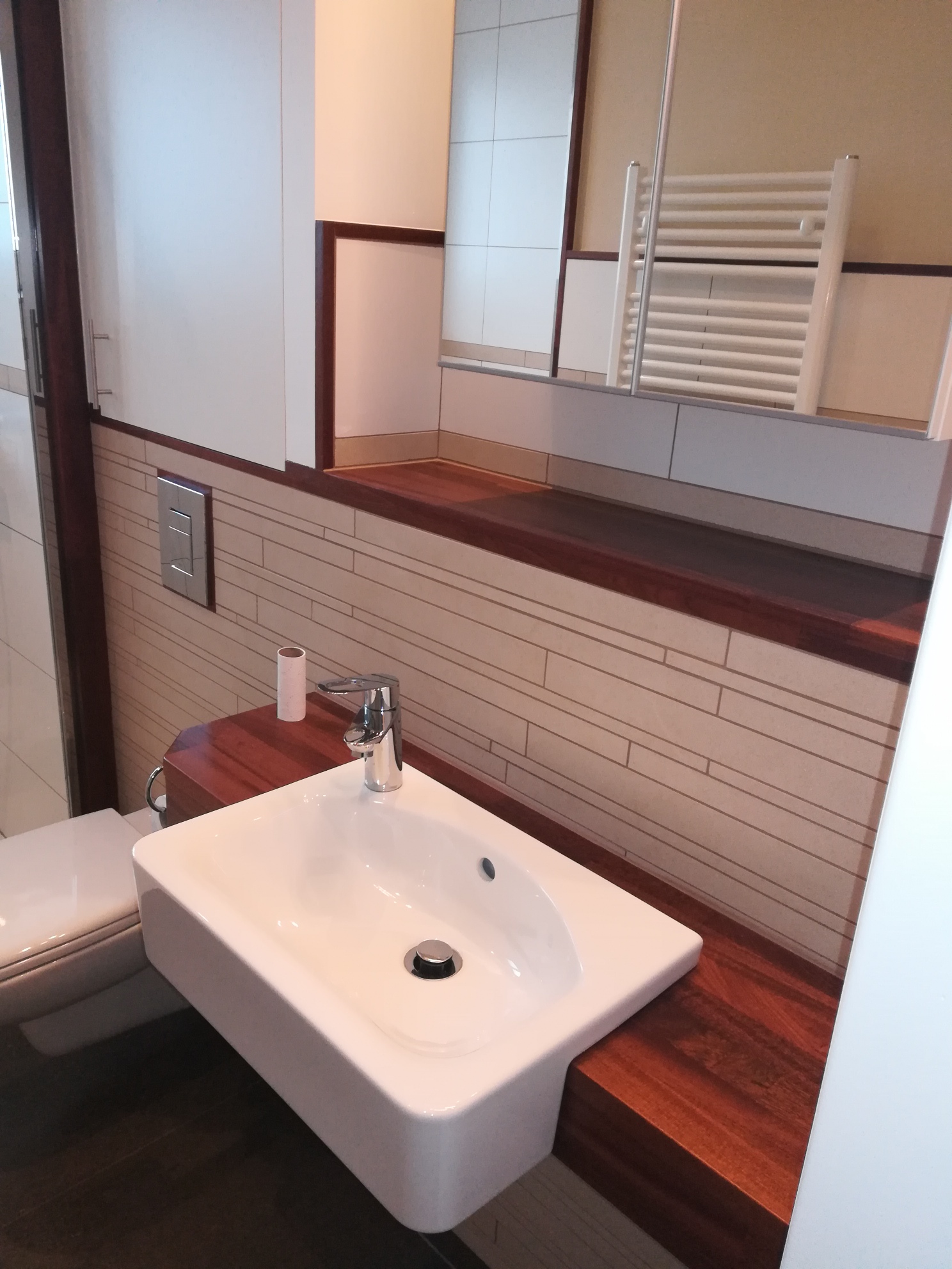 Réalisation des menuiseries complète d’une salle de bain en bois exotique , à savoir :