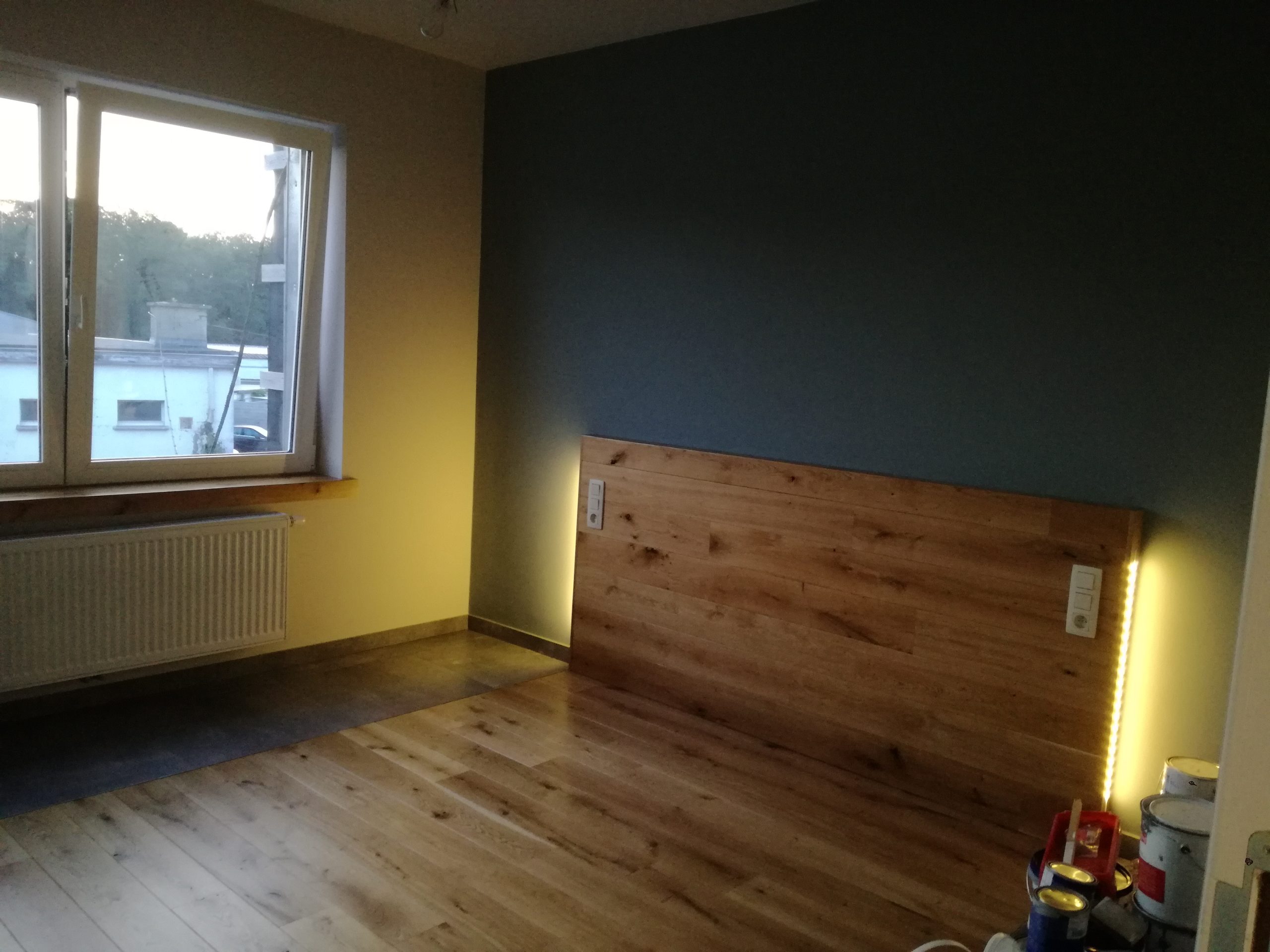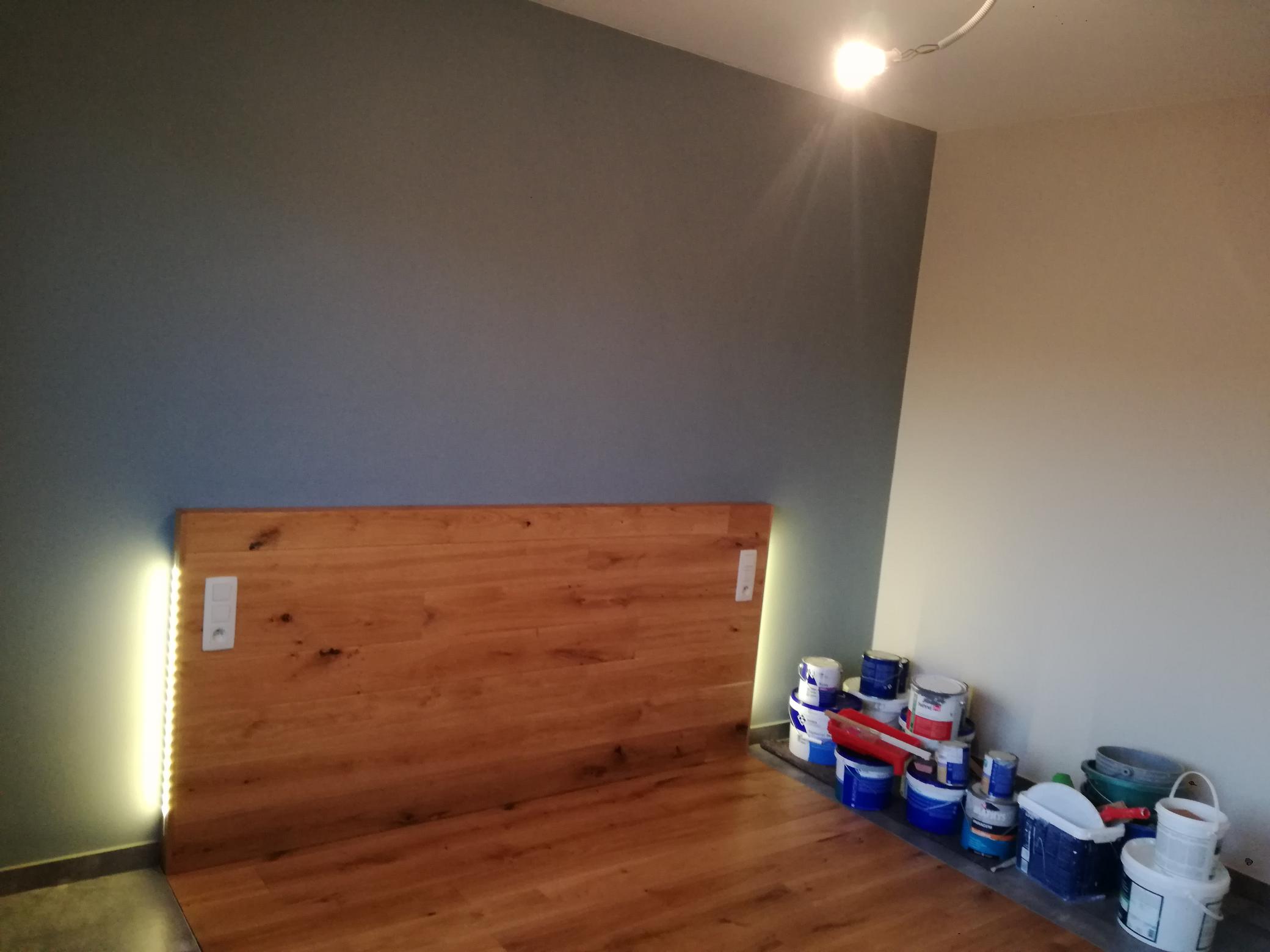 Parquet massif et tête de lit